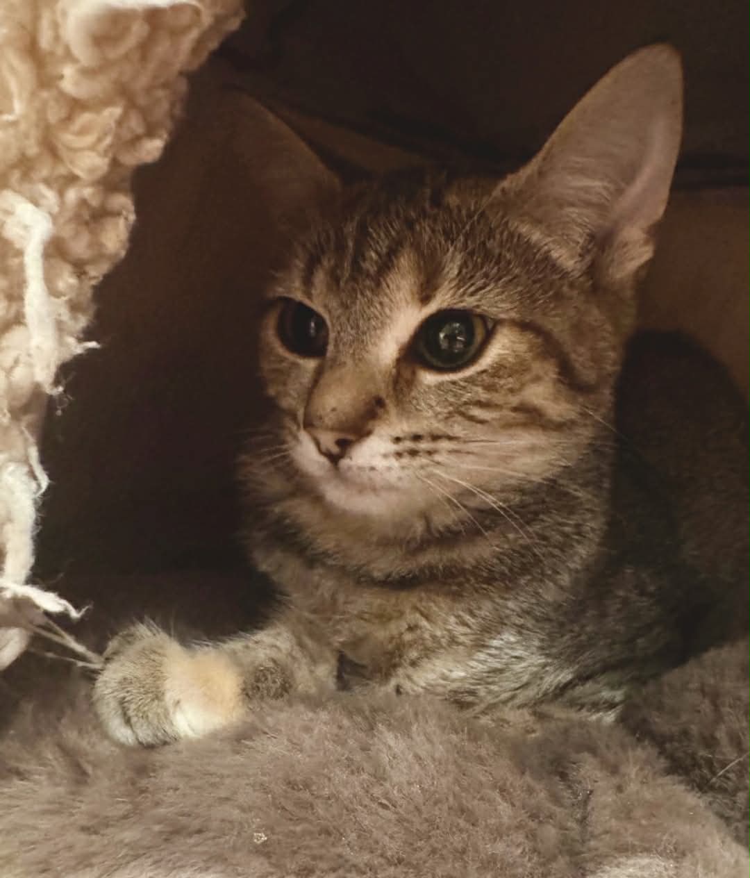 Matilde er en leken og kosete pusekatt med masse personlighet. Hun kan være litt forsiktig i starten, men når hun blir trygg, er hun en sosial og kontaktsøkende jente som gjerne “snakker” med deg og kommer når du roper. Hun er helsesjekket, vaksinert, ID-merket og kastrert – klar for sitt nye hjem